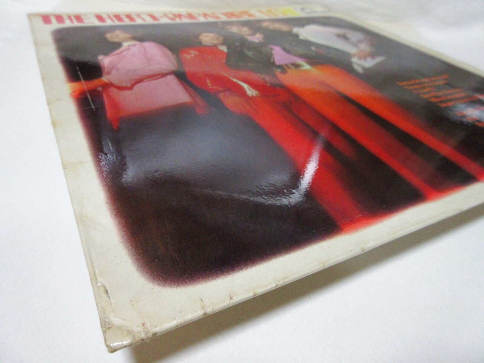 表ジャケは若干のリング/コーティングすれ、右上にラベルシール剥がし跡(キズ)、四隅に角打ち、天エッジ沿いに仄かな黄ばみ汚れ、取り出し口側に複数の折れ&ヨレジワ、エッジ沿いにヨレジワや黄ばんだシワが散見されますが、ツヤは概ね良好です。裏ジャケはうっすらとしたリングウエア、所々にシミ汚れ、折り返し部にコーティング浮きを伴った多くのヨレジワ、折り返し底部中程にスレ剥がれ&接着剤跡(恐らく剥がれを修復した跡)が見られる等、全体的に経年/使用感/傷み有りです。四隅の角及びエッジの所々にスレ剥がれが散見されますが、抜けは無く背文字も鮮明です。